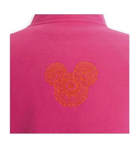 Shape up in style wearing this Mickey track jacket for women. Contrast stitching, embroidered details, and a far-out paisley pattern will make you smile with every mile, while the cotton and spandex blend keep you comfy. Brought to you exclusively from Disney Theme Parks.Feature
