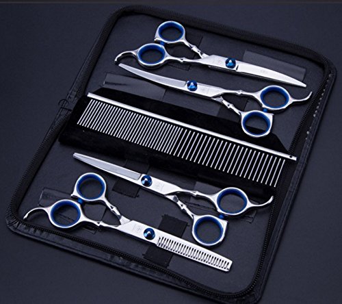 Product DescriptionNow get this heavy duty dog grooming kit, start your professional grooming trip! Package Including: 1 x 7.5" Curved Scissor (point down)? 1 x 7.5" Cutting Shear? 1 x 7.5" Thinning Shear? 1 x 7.5" Grooming Comb? 1 x Package Case?0