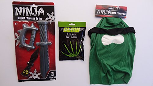 -. Brand : Greenbrier Intl -. Color : Green -. Department : Boys -. Feature : Ninja Mask With Black Hood Playset Bundle / Ninja Playset Knife Dagger Iron Knuckles / Iron Knuckles / Skeleton-Hand Glowing Glove -. ProductGroup : Apparel -. ProductTypeName : CHILDRENS_COSTUME -. Size : Medium -. Title : Ninja Mask With Hood Bundle-3 Items: Mask And Hood With Dagger Knuckles Glow Hand -. UPC : 634385653300