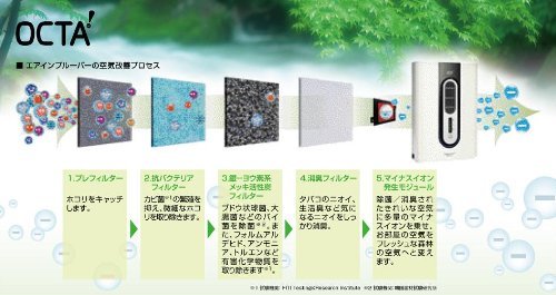 ※マイナスイオンの測定量は、吹出口から5cmの距離、気温20℃、湿度42%の条件で測定したものです。 ■定格風量: スリーブモード時 11m3/h 中モード時 16m3/h 高モード時 21m3/h ■定格消費電力: スリーブモード時 6W 中モード時 7.5W 高モード時 8W ■ノイズレベル:スリーブモード時 28dB 中モード時 31dB 高モード時 34dB ■付属品:プレフィルター 1枚 ※本体に装着されています。 除菌/消臭フィルター 1枚 ※本体に装着されています。