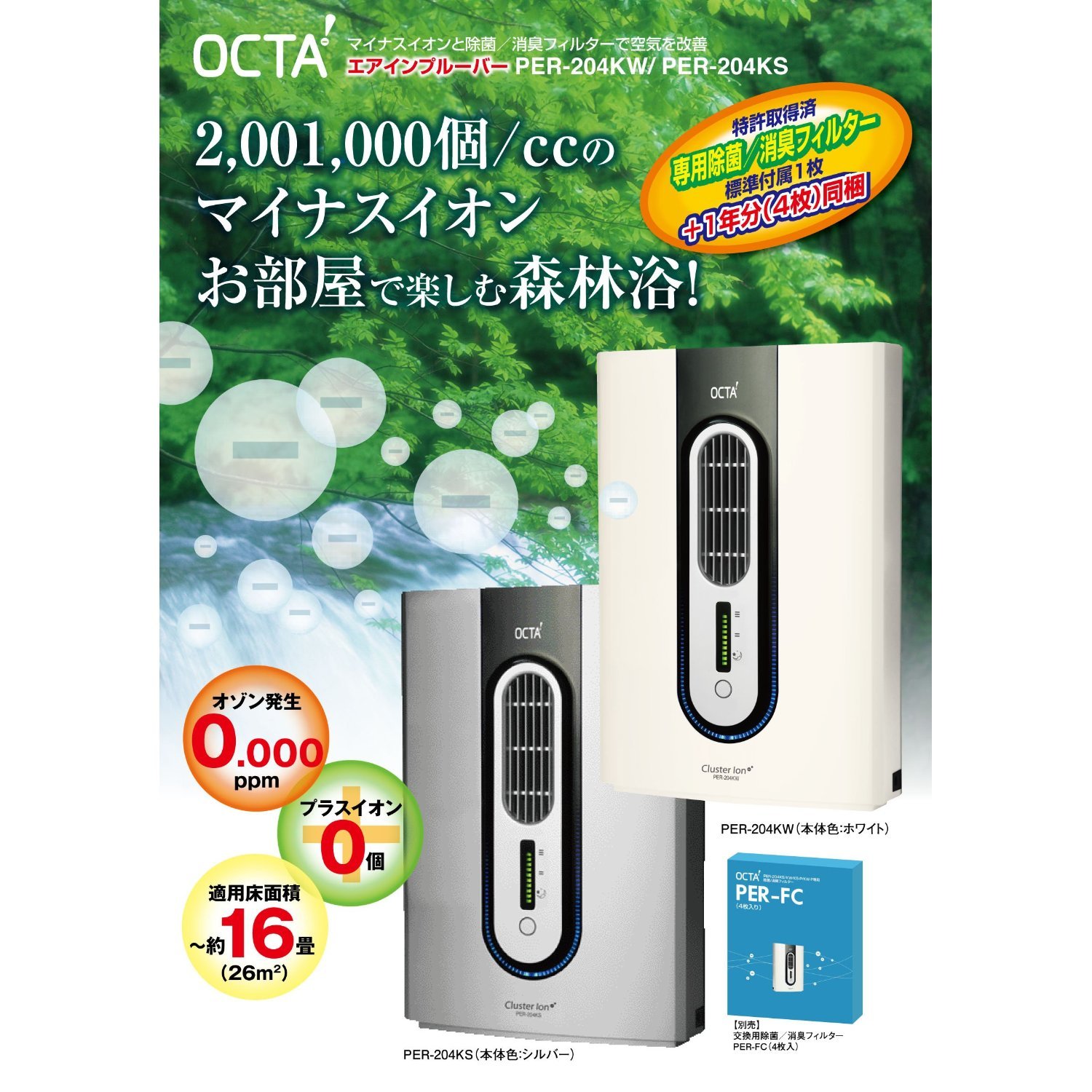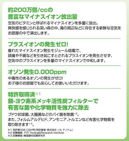 2001000個/ccのマイナスイオン!