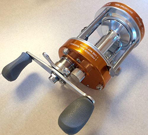 Studio : Ming Yang Publisher : Ming Yang Binding : Misc. Product Description Feature Great reel left handed reel for Saltwater and Freshwater Fishing and Big Game Fishing Color: Orange 3 Ball Bearing Gear Ratio 4.2:1 One-way Clutch Anti-Reverse Bearing Ridig Chrome - Plated Brass Frame Anodized Aluminum Side Plates Machined Aluminum Spool Anodized Gold Smooth Main Gear Applied Star Drag System Selective On/Off Bait Clicker Dual Centrifugal and Mechanical Brake System Line Capacities 180 yards of 14lb line 250 yards of 16lb line 210 yards of 20lb line 250 meters of .40mm line 320 meters of .35mm line Size and Weight 16 ounces Reel Body: 3 1/2 Wide Reel Diameter: ~3 Inches 0
