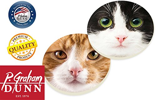 Orange Black and White Cat Faces 2 Piece Ceramic Car Coasters Set