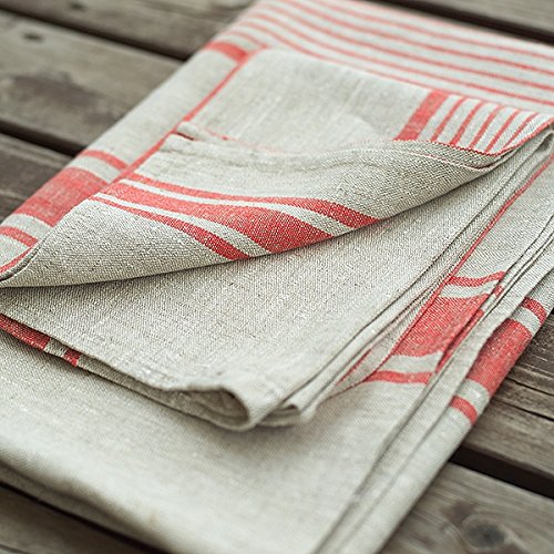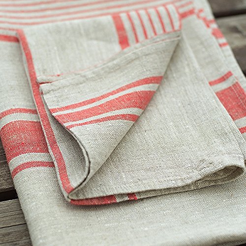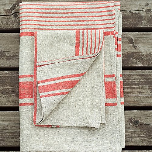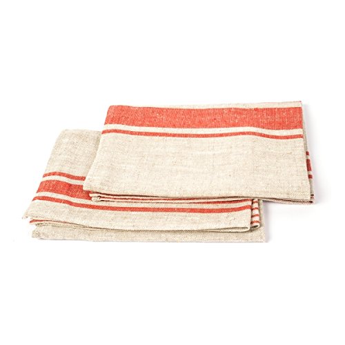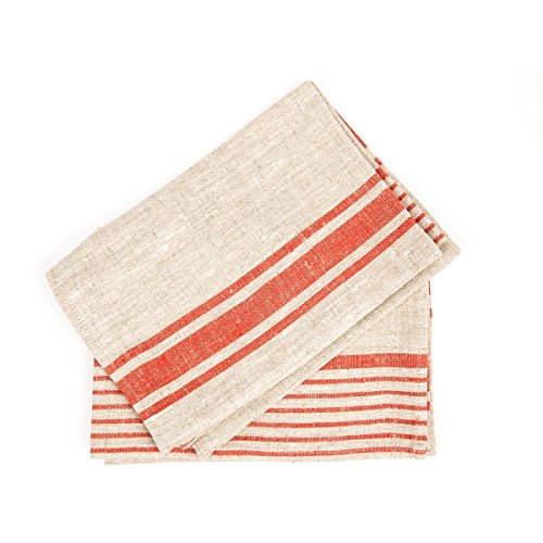 LinenMe Linen Provence Hand and Guest Towels, 18 by 28-Inch, Natural Red Striped, Set of 2