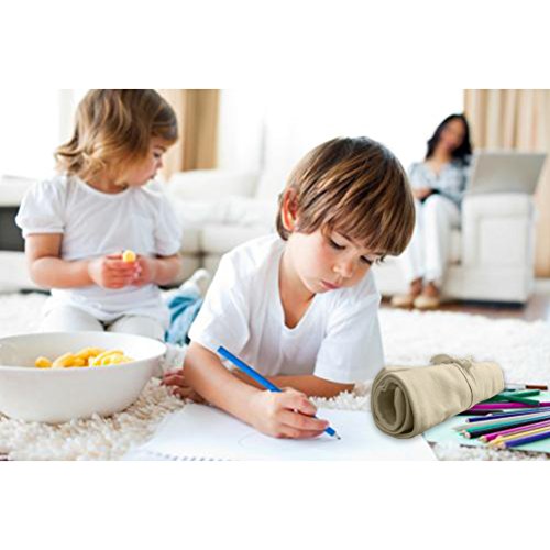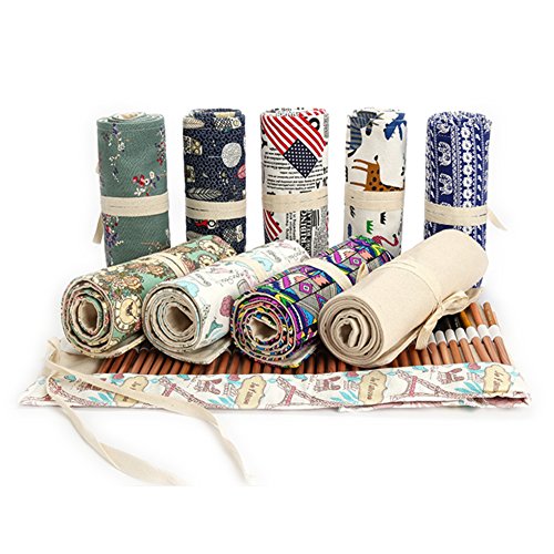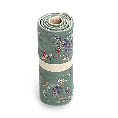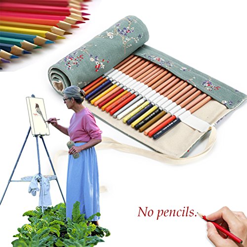 Canvas Pencil Wrap, Jewelvwatchro Pure Handmade, Travel Drawing Coloring Pencil Roll Organizer for Artists,for Adults, Students and Children (Pencils are NOT INCLUDED) (72Holes, Plum flower)