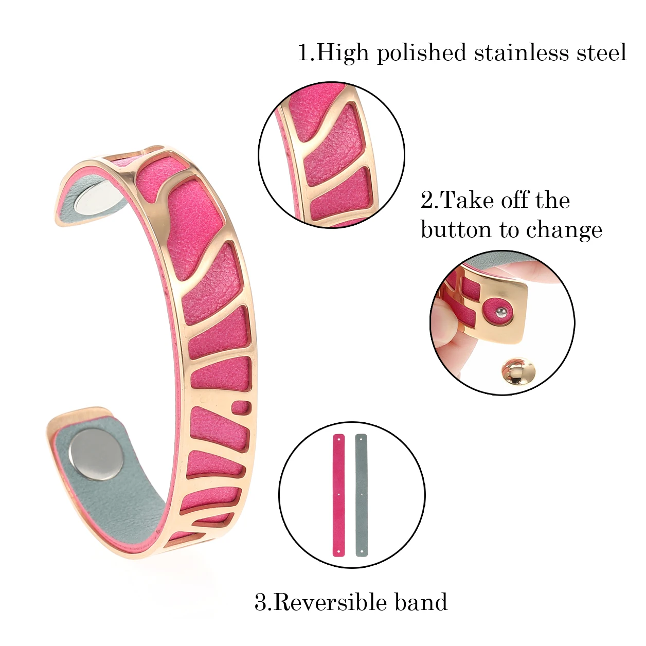 Item Name:Personalized Reversible Color Leather cuff Bangle