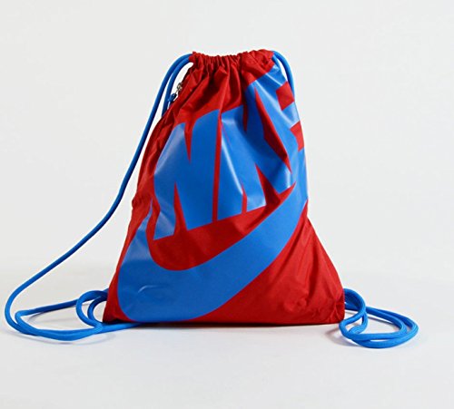 Nike Heritage Drawstring Gymsack Backpack 400 Denier Sport Bookbag (University Gym Red Signature Sky Photo Blue Swoosh)
