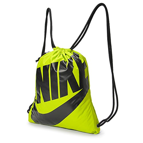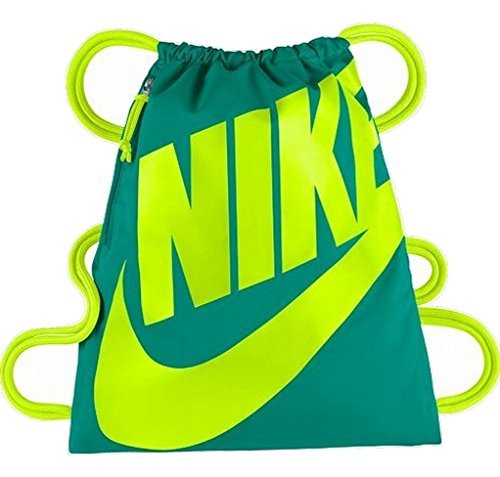 Nike Heritage Drawstring Gymsack Backpack Bag, 400 Denier Sport Bookbag (Palm Green/Black/Black)
