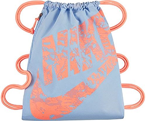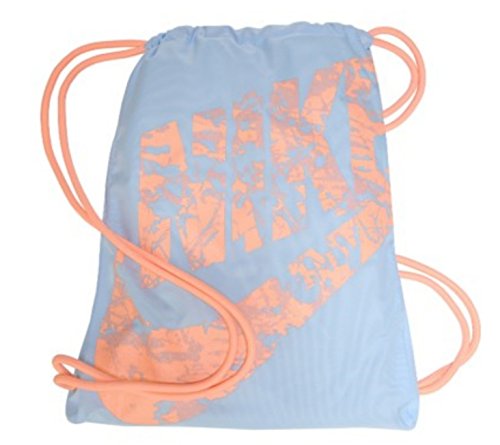 NIKE Heritage Drawstring Gymsack Backpack 400 Denier Sport Bookbag (Ice Castle Blue/Sunset Glow Orange Signature Swoosh)