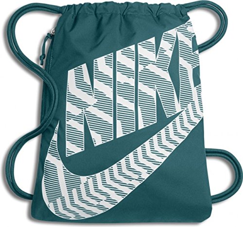 NIKE Heritage Drawstring Gymsack Backpack 400 Denier Sport Bookbag (Iced Jade Jewel/White Graphics Mix Signature Swoosh Logo)