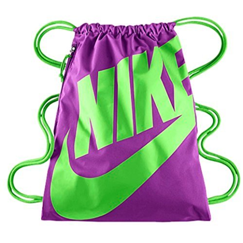Nike Heritage Drawstring Gymsack Backpack 400 Denier Sport Bookbag (Vivid Grape Purple Signature Ghost Green Swoosh)