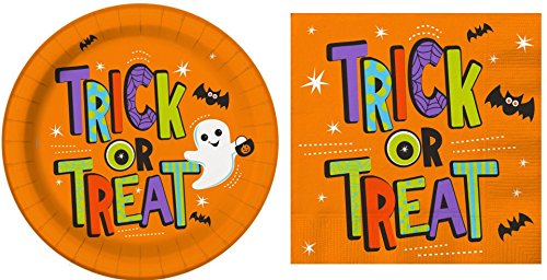 "Trick or Treat" Halloween Party Set - Disposable Plates and Napkins For 16 People!
