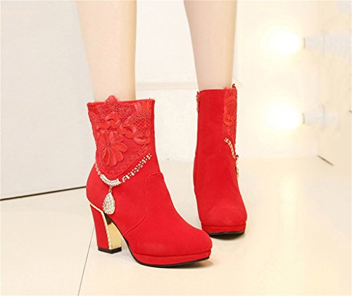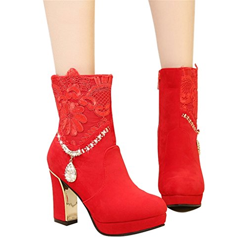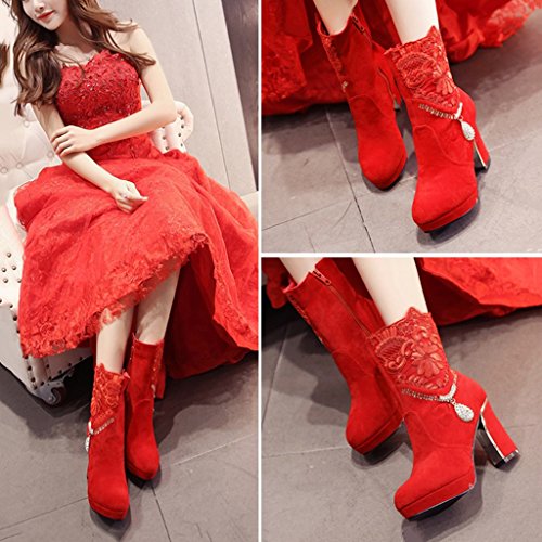 Studio : ALUS Publisher : ALUS Binding : Kitchen Product Description Product Name: Autumn and winter models - wedding shoes Upper material: other Sole material: non-slip rubber tendon at the end Shoes material: Short velvet Wearing style: zipper Sole craft: viscose shoes Size: As shown (standard size, foot fat recommended to buy a large 1-2 yards) With high: 9cm Toe shape: pointed Heel shape: rough with Popular boots models: short boots Function: wear-resistant, absorbent, non-slip, breathable Suitable season: winter, autumn Style: wedding shoes Quantity: 1 pair Features: ★ using high quality materials, wear comfortable, clear texture, with good breathability Suede lining has good breathability, light and comfortable ★ rubber tendon soles, soft wear-resistant, shock-absorbing and many more slippery Care instructions: 1. Use neutral soap or detergent water to clean 2. Insert the newspaper in the shoe 3.Shoe should be placed in ventilated place, wrap the facial tissue in the upper to avoid excessive direct sunlight Reminder: Do not soak too long, separate cleaning with other shoes, to avoid string color! 0
