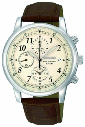 Seiko Men''s SNDC31 Classic Brown Leather Beige Chronograph Dial Watch