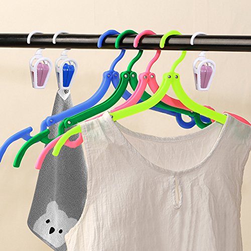 -. Title : 8 Pcs Portable Travel Folding Clothes Hangers, YuCool Foldable Plastic Drying Rack for Kids and Adults,with 4 Pack Clips - Blue, Green, Yellow, Pink