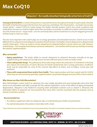 Max CoQ10 100CF - 60 gels · Proprietary Crystal-Free High-Dose CoQ10 · by Adaptogen Research Pharmaceutical Grade Supplements