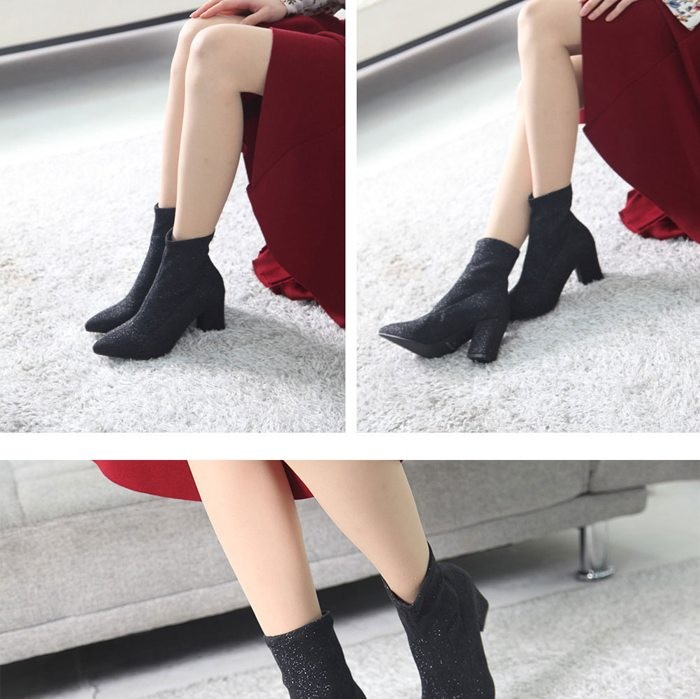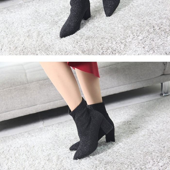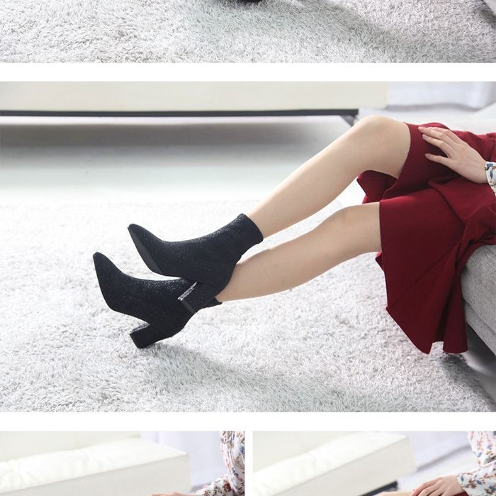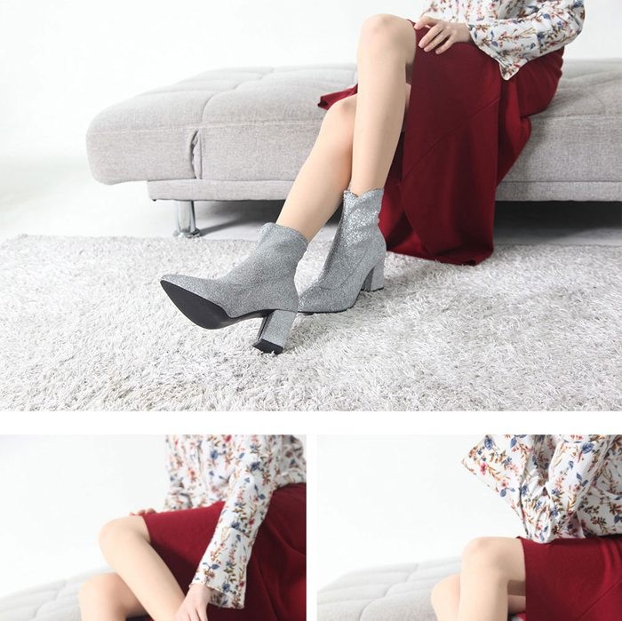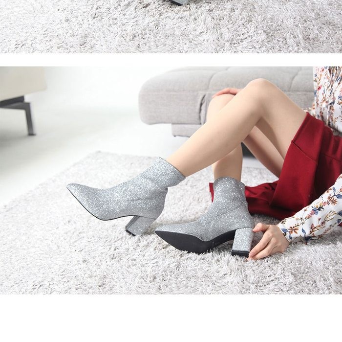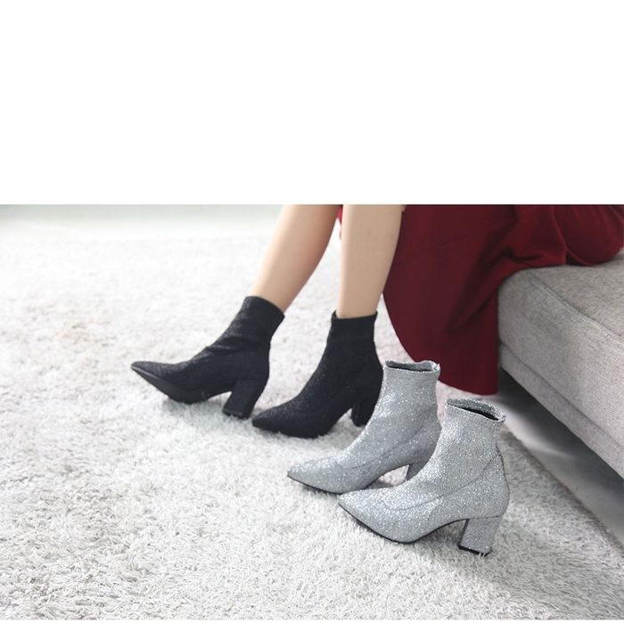 商品名:ストレッチブーツ レディース ピンヒール ポインテッドトゥ キラキラ 2017 秋冬 ファッション 靴 婦人靴