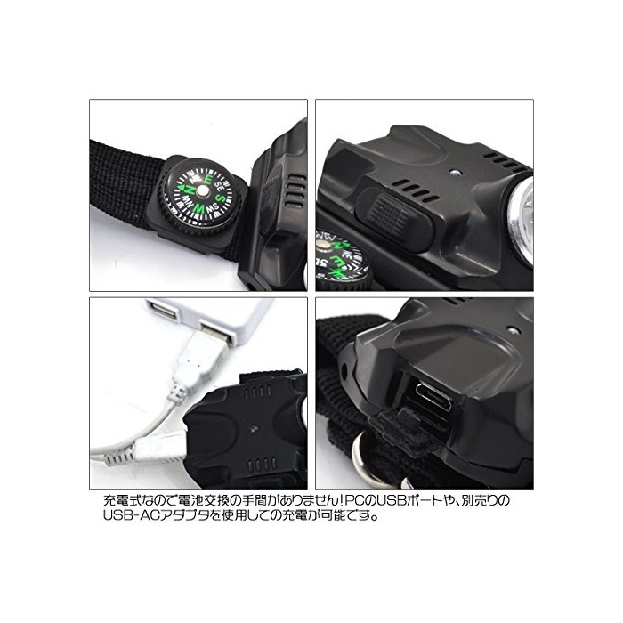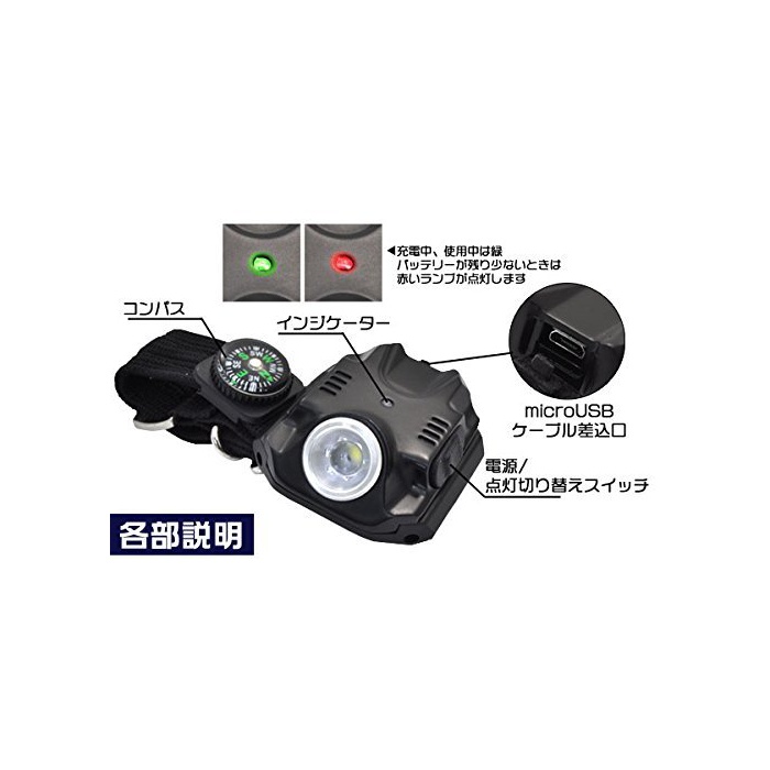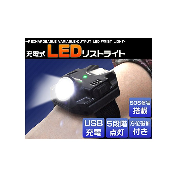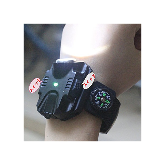 원본상품명: beauty life リストライトコンパス付き 充電式 腕時計型 力 ライト SOS信搭載 5段階点 アウトドア レジャ サバイバル 防災 避難 夜釣り 【ブラック】