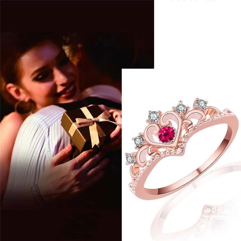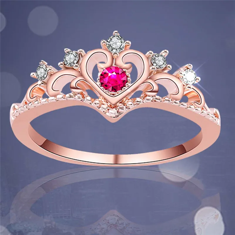 Women Wedding Engagement Ring:Rose gold Silver Princess Crown Rings Jewelry