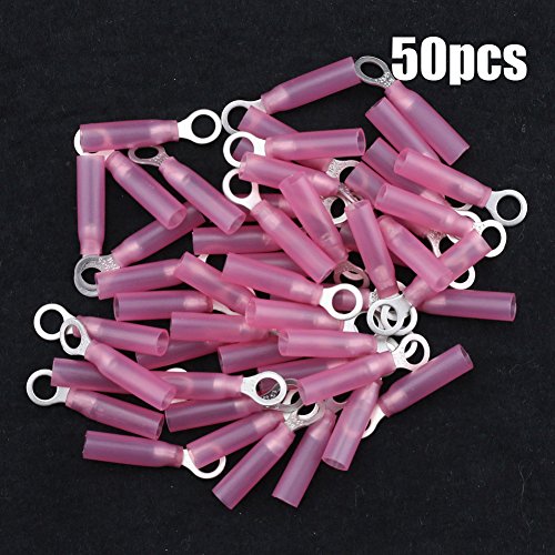 Hilitchi 50Pcs Nylon Heat Shrink Ring Insulated Terminal Electrical Wire Crimp Connector (22-16AWG, #10)