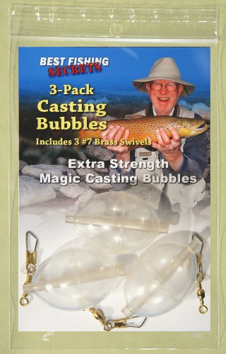 -. Binding : Home -. Brand : BestFishingSecrets -. EAN : 0000309510163 -. Feature : Made of tough Butyrate Plastic in the USA! The strongest, most water tight bubbles made. / Package includes 3 Magic Tough Butyrate Plastic Bubbles and 3 #7 Brass Snap Swivels / Fill the bubble with one hand. / Bubble stopper ALWAYS inserts with a tug on the rod. / Simple set-up instructions included -. Label : BestFishingSecrets -. Manufacturer : BestFishingSecrets -. Model : 51016 -. MPN : 51016 -. PartNumber : 51016 -. ProductGroup : Home -. ProductTypeName : ART_AND_CRAFT_SUPPLY -. Publisher : BestFishingSecrets -. Size : Medium 1 1/8" - 1 3/4" -. Studio : BestFishingSecrets -. Title : 3-Pack Casting Bubbles 1 1/8" X 1 3/4" -. UPC : 000309510163