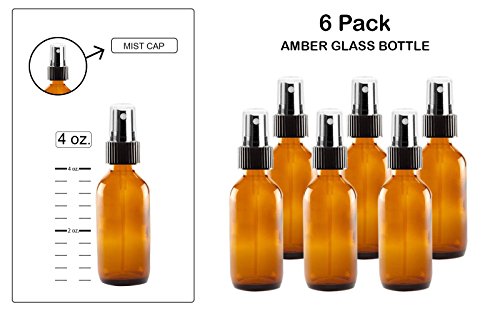 Mist spray/ Glass Medicine Bottle, Amber Boston Brown Round Bottles 4OZ. 6Pack - For Essential Oils, Scents, Travel, Perfume Kitchen, Bath, Cooking, Labs, Laundry, Cosmetic.- Re-Usable -By Katzco