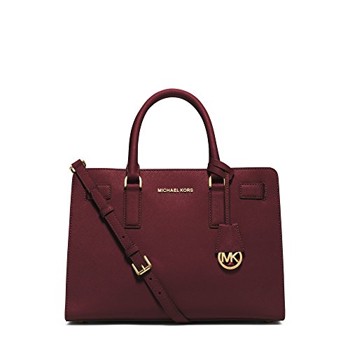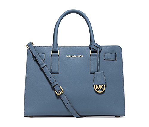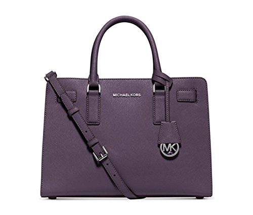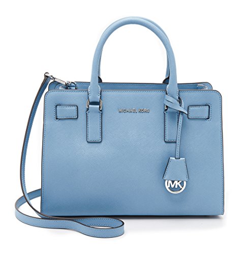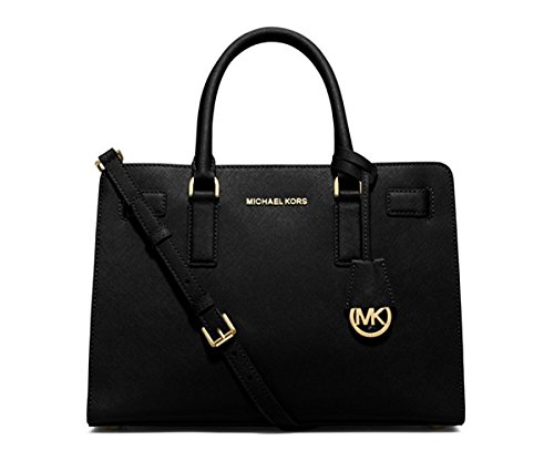 Saffiano Leather; Double handles with 4-1/2" drop; adjustable crossbody strap with 17-1/2" to 19-1/2" drop