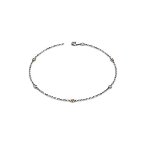 -. Binding : Jewelry -. Brand : TriJewels -. Department : womens -. Feature : 2 Round Diamond & 3 Round Citrine set using Bezel Setting. / SI2-I1-Clarity, G-H-Color Diamond & SI1-SI2-Clarity, Orange-Color Citrine. / Gemstones may have been Treated to Improve their Appearance or Durability & may Require Special Care. / The Natural Properties & Composition of Mined Gemstones define the Unique Beauty of each Piece. The Image may show Slight Differences to the Actual Stone in Color & Texture. / All our Diamonds to our Best Knowledge are not Conflict Diamonds. -. Label : TriJewels -. Manufacturer : TriJewels -. Model : BR10015DB50 -. MPN : BR10015DB50 -. PartNumber : BR10015DB50 -. ProductGroup : Jewelry -. ProductTypeName : FASHIONNECKLACEBRACELETANKLET -. Publisher : TriJewels -. Studio : TriJewels -. Title : Petite Citrine and Diamond (SI2-I1, G-H) by the Yard 5 Stations Bracelet 0.17 ct tw in 14K Gold