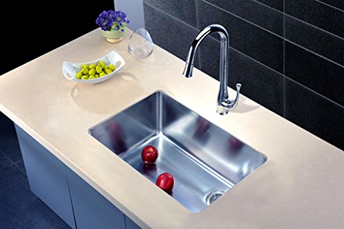 Dawn DSU2517 Undermount Single Bowl Sink with Rear Corner Drain, Polished Satin