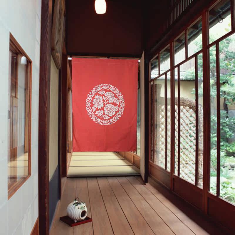 创意玫瑰花卉门帘 红色中式喜庆挂帘布艺隔断帘厨房卧室棉麻门帘