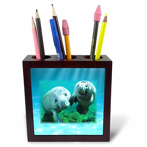 3dRose ph_39647_1 2 Manatees Looking at You Tile Pen Holder, 5-Inch