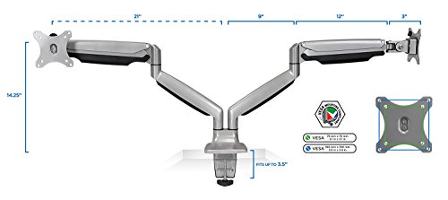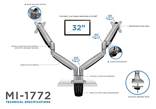 Spring arm is height adjustable to 13". Gas spring offers adjustable counterbalance to the weight of the monitor, making it incredibly easy to change monitor height