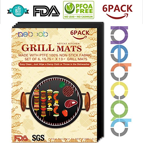 - SAFETY & Eco-FRIENDLY: NETCAT BBQ grill mats are made from 100% PFOA-Free materials and premium PTFE-Fiberglass coating, no PFOA, silicone or other dangerous chemicals! Certified as safe by the FDA approved and guaranteed by a lifetime warranty.