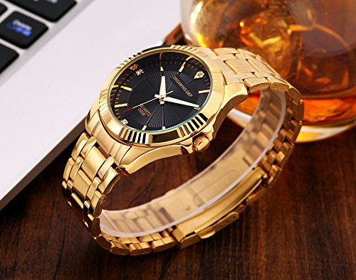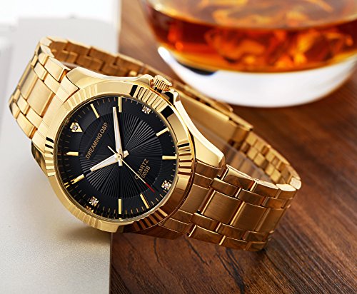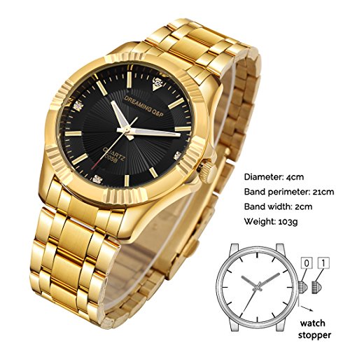 Gold Stainless Steel Men's Casual Watches - fq005 IP Plating Quartz Dress Wristwatches for Man, Black Face