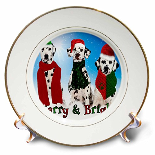 3dRose cp_172992_1 Three Dalmatian Dogs in The Snow for a Merry and Bright Christmas-Porcelain Plate, 8-Inch
