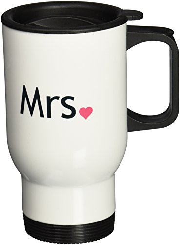 3dRose Mrs. with Red Love Heart-Part of Mr. and Mrs. Set for a Romantic Couple Travel Mug, 14-Ounce