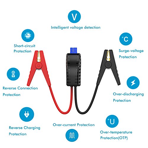 [Smart Clamp with Security Assurance]: Safe and mistake-proof design smart clamp offer over current protection, short circuit protection, overload protection, reverse connection protection, reverse charge protection and over temperature protection