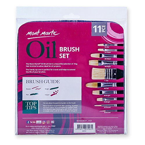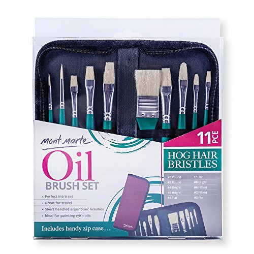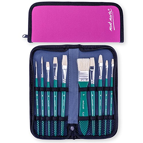 Mont Marte Hog Bristle Oil Paint Brush Set in Wallet 11pce