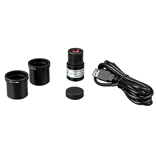 AmScope M150B-E Digital Compound Monocular Microscope, WF10x and WF20x Eyepieces, 40x-800x Magnification, LED Illumination, Brightfield, Single-Lens Condenser, Coaxial Coarse and Fine Focus, Plain Stage, 110V, Includes 0.3MP Camera and Software