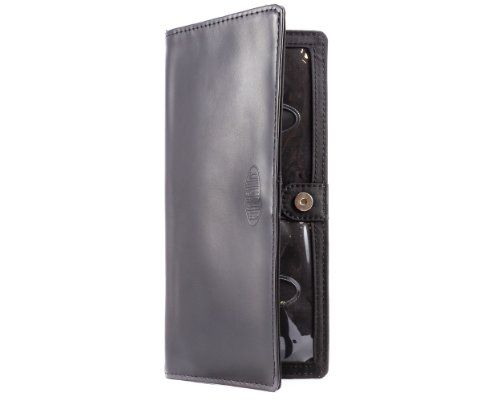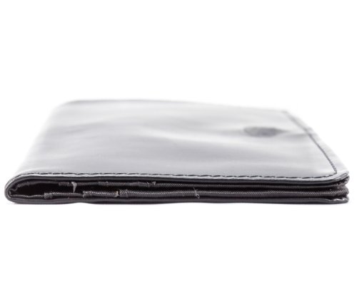 - Feature : Ultra-thin checkbook wallet is roomy enough to accommodate 40 thick plastic cards, checkbook and cash / 2 general billfold/checkbook areas, 8 extra-wide credit card pockets, 2 ID pockets / Pockets lined with rubbery coating to prevent cards from sliding out / Constructed of top grain cowhide leather with nylon microfiber interior / Measures 7-1/2 x 3-1/2 Inch