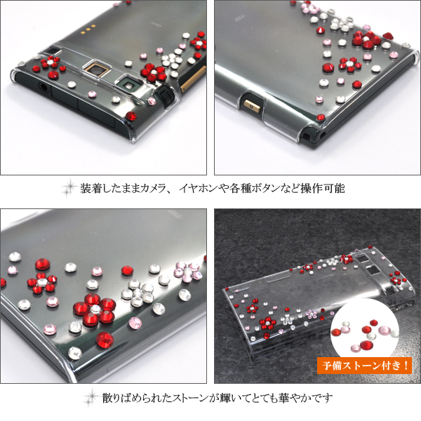 ストーンで配置されたお花が輝く、華やかなデコケースです。