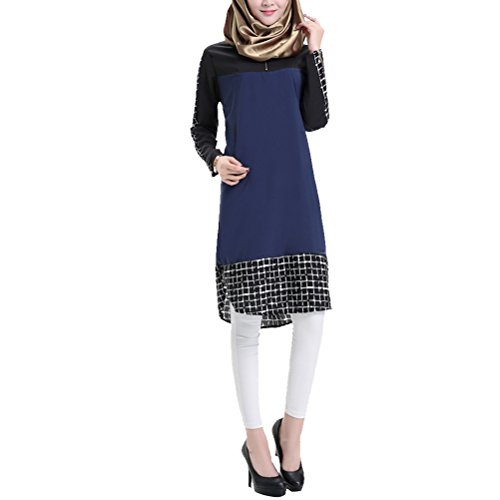 -. Title : Zhhlaixing 高品質 Muslims Splicing Ladies Women Lattice Long Sleeves Middle Dresses ドレス