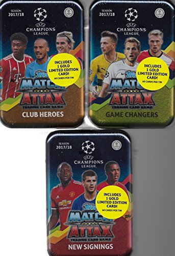 - This is a Gift Lot containing one each of the three different 2017 / 2018 Topps UEFA Champions League Match Attax Soccer Trading Card Game Sealed MEGA Collector's Tins.