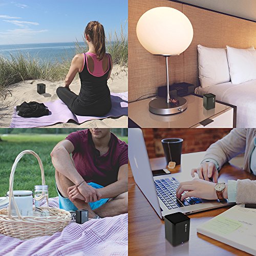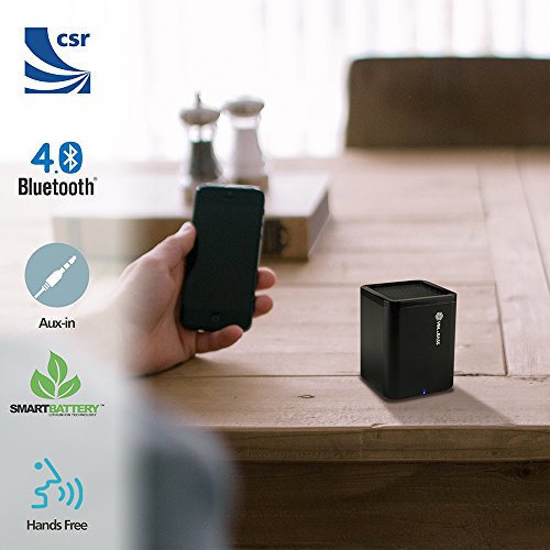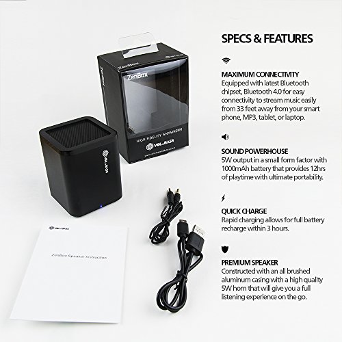 -. Feature : SUPERIOR SOUND QUALITY with full Hi-Def Sound: Enjoy an impressively full STEREO sound and robust BASS realized through a 5W audio horn driver and Passive Subwoofer. SRS HD technology will deliver real bass in such a compact form you'd forget it is a pocket size speaker. Incredible sound to size ratio that has to be heard to believe. Capable of filling any space with crystal clear powerful audio. Amazing immersive high fidelity experience with 12 HRS of playtime - 2 hours FULL CHARGE! / GREAT GIFT FOR ANY OCCASIONS with hour and hours of playtime with high definition surround audio. Quick charge 1000mAh Battery. Smartphones, cell phones, computers, ebook reader, wearable technology, smart watch, tablets - all work! EASY TO PAIR - No code/pin needed. Built-in microphone surround audio loud enough to hear in the bathroom shower, camping, biking, mountain climbing, BBQ party, Beach and Jacuzzi. FULL Drivers delivers Hi-Fi audio that can outclass any similar sized speakers. / ULTRA PORTABLE POCKET SIZED STEREO powerhouse delivering size-defying sound you can take anywhere - Premium brushed BLACK Aluminum compact design gives it the most discreet and elegant look to fit any settings. Symphonized with special self boosting amplifier technology to reduce distortions while streaming clear, full-bodied sound you simply wouldn't expect. Less than 1% Total Harmonic Distortion Ensures Enhanced Clarity and Fidelity / BLUETOOTH 4.0 TECHNOLOGY means the most compatible connection across ALL platforms providing reliable, stable connections regardless of BT versions in your devices. Backward compatible with extended range. The most stable streaming of your favorite Podcasts, Spotify media and other audio seamlessly from your laptops, computers, Mac or PC. Supplies studio rich high fidelity music quality at home, the office, indoor and outdoor. Best in class for sound vs size, connectivity and style / STEAL ME 7 SALE - INSTANT $7 OFF with Coupon Code STEALME7 at check out. Your complete satisfaction is our #1 P.R.Iority. We stand behind all of our products, and you'll be protected by our amazing 365 days no questions asked money-back guarantee & lifetime technical support. Got questions? We're an email away, and we'll do our best to make sure you are satisfy with your purchase. Buy now! and bring your ultimate tunes anywhere!