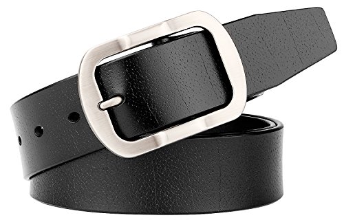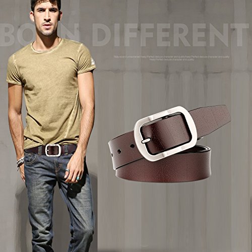 Stylish & Versatile--The classy belt with a fashion pin buckle,great for dress of everyday work and business meeting,it can go well with any casual jeans.This is also a tough and quality belt can be used for heavy duty.