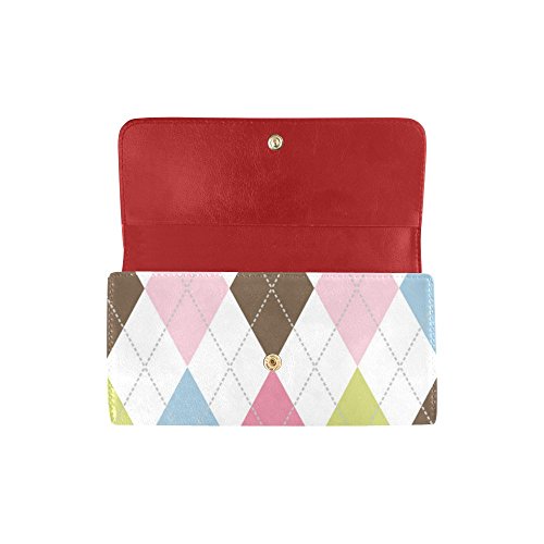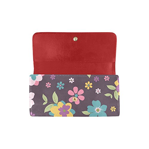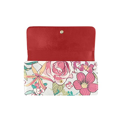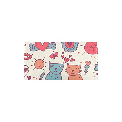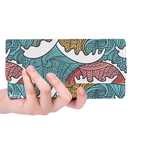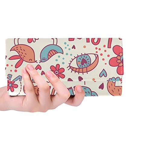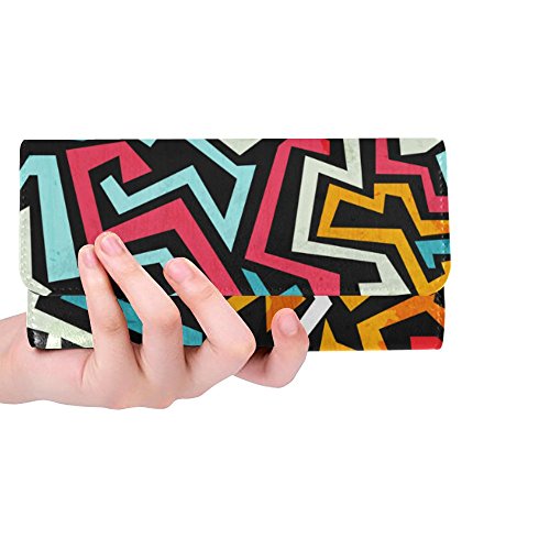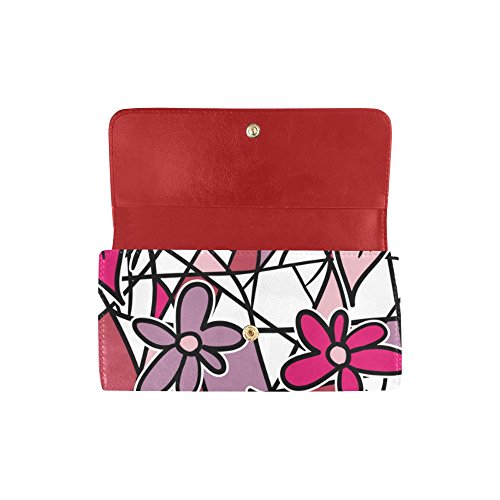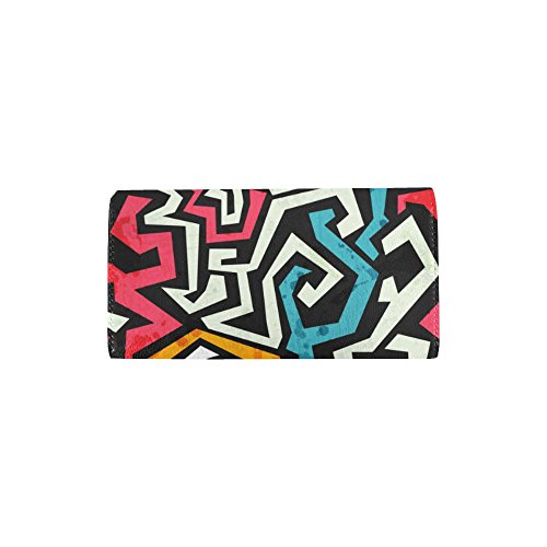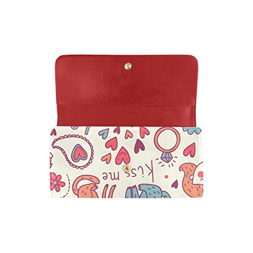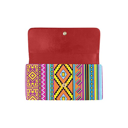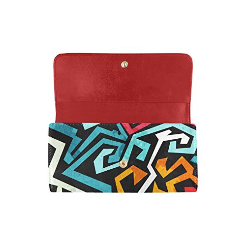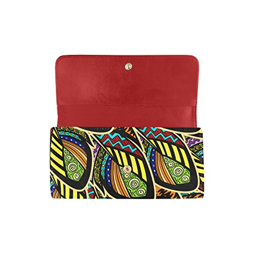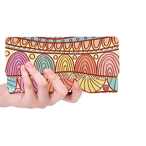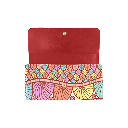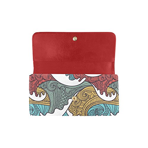 | (InterestPrint)/Accessories/Handbags/DIRECT FROM USA/InterestPrint ladies leather trifold wallet colorful stripe doodles pattern print on women red ... |
