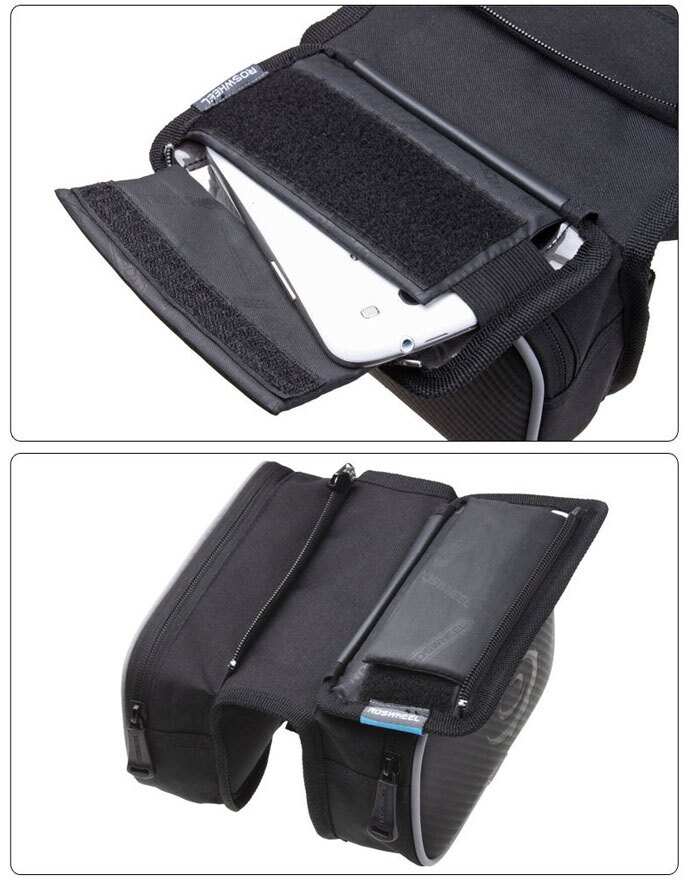 This Roswheel OutdoorBike Front Frame Saddle Bag allows you to store youressential items on the go while having easy access to your mobilephone.