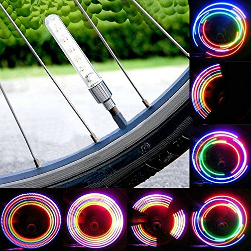 -. Feature : Consist of 5 pcs colorful LEDs which flash 8 different patterns,and the patterns will be changed every 4 seconds / Equipped with light sensor and movement sensor,flash only at night and action;Be seen while riding your bicycle, this LED light is the perfect solution for night-time safety when biking. / Easy to install, just simply screw on your tire valve stem ;Turn on/off switch, Displays when the wheel rotating Tire ;LEDs will look awesome on your bike / Skid-proof, abrasion resistance and ordinary waterproof design;Easy mount and release , installed in seconds before you get ready to ride / Package includes: 2 x Bicycle Wheel Tire Valve Cap Spoke Light ;Lifetime warranty;7-15 business days delivery date with tracking number
