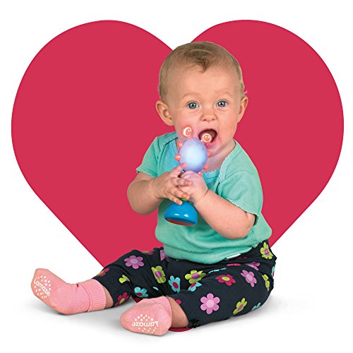 Easy-grip handle and soft, curvy edges makes grasping and shaking safe and fun, promoting fine motor skills