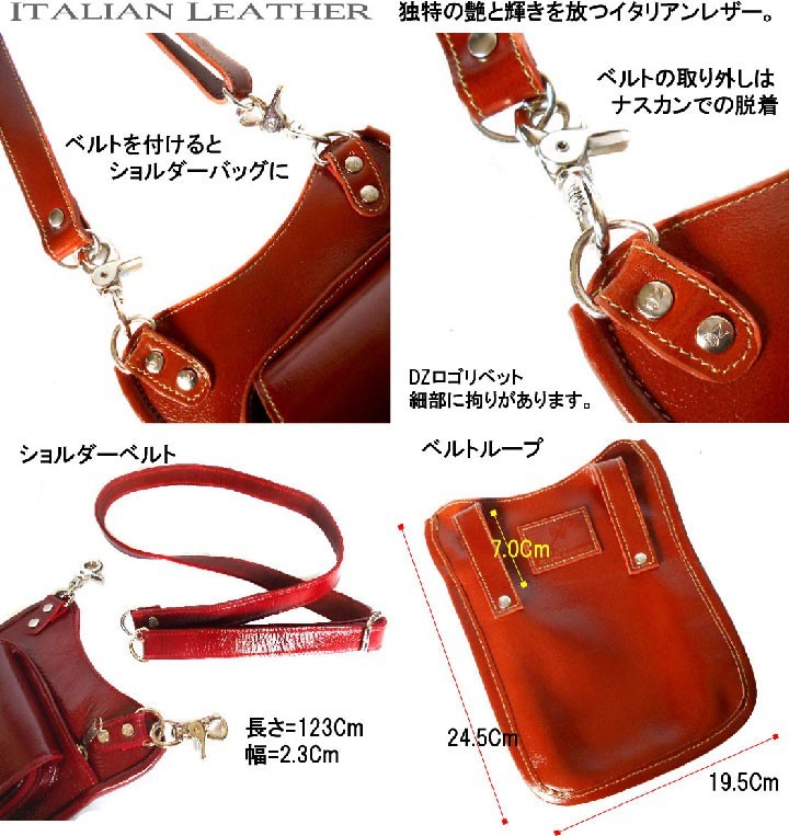 Deep Zone ワイルドでセクシーを上品にまとめる男のレザーブランド。 自分買いからプレゼントにも人気でオススメです。一流革職人がハンドメイドで仕上げられた、 本革 レザー ボディバッグ、ワンショルダーバッグ【素材】 牛革 金具:合金製 【サイズ】高さ:約24.5cm 幅:約19.5cm【カラー】レッド・ブラウン・ブラック独特の光沢を放つ特徴のイタリアンレザーを丹念に作り込まれたショルダーバッグ&ヒップバッグショルダーベルトをはずしてヒップバッグとして着用!ワイドに作成されたメインポケットは財布、スマートフォン、車のキーや手帳、等の小物をスタイリッシュに持ち運びできます。ショルダーベルトは長さ調整は可能。使用するパーツにまで拘っております。シンプルマインドに可愛さと大人の高級感を表現しており馴染むほどに自分のものとなるエイジングを味わって頂けます。本革 メンズ レザー ボディバッグ ワンショルダーバッグ 男女兼用